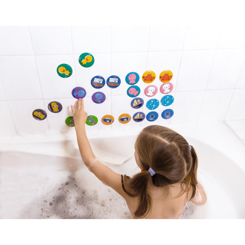 Geheugenspel met 24 kaarten van schuimrubber die op het water drijven, ideaal om mee in het bad te spelen. Pure magie!
