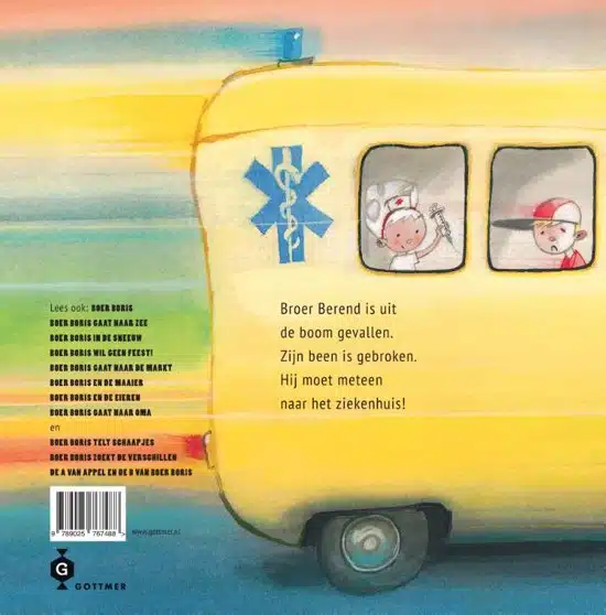 O jee, broer Berend is uit de appelboom gevallen en heeft zijn been gebroken! Hij wordt per ambulance naar het ziekenhuis gebracht. Als hij daar een nachtje moet blijven slapen, voelt hij zich wel heel alleen. De volgende dag komen Boris en zusje Sam gelukkig op bezoek.