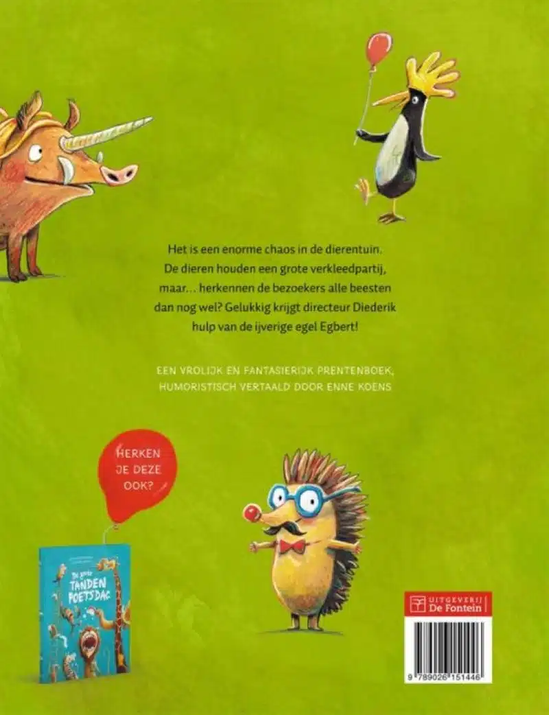Het is één grote chaos in de dierentuin. De dieren houden een grote verkleedpartij, maar… snappen de bezoekers dan nog wel wie wie is? Gelukkig krijgt directeur Diederik hulp van de ijverige egel Egbert!