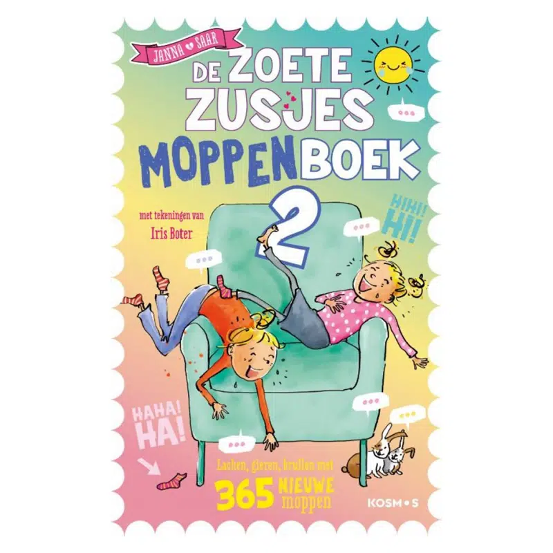 De Zoete Zusjes en hun moeder Hanneke de Zoete hebben wat afgelachen het afgelopen jaar. In ‘De Zoete Zusjes moppenboek 2′ hebben Saar en Janna weer de leukste grappen en raadsels voor je verzameld. Voor elke dag is er een goeie gloednieuwe grap! Neem het boek mee naar je vriendjes, klasgenootjes of je oma en opa en laat iedereen lekker lachen gieren brullen!