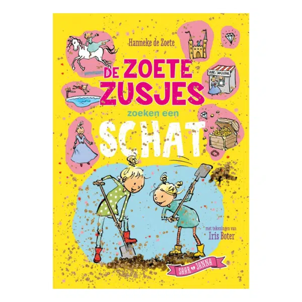 Hanneke de Zoete vertelt in De Zoete Zusjes zoeken een schat hoe Saar en Janna op avontuur gaan om een schat te vinden. Ze zien het helemaal zitten, want terwijl ze aan het zoeken zijn bedenken ze wat ze allemaal zullen doen als ze rijk zijn. Wonen in een kasteel, een eigen frietkraam, en een zwembad! Maar schatzoeken is nog helemaal niet zo makkelijk als het lijkt