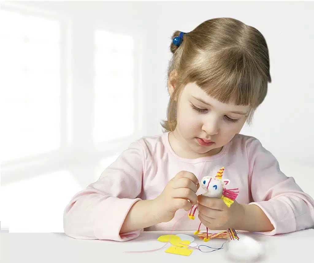 Ouder-kind plezier! Goed voor de fijne motoriek, gemakkelijk te naaien. Soft plush materiaal.