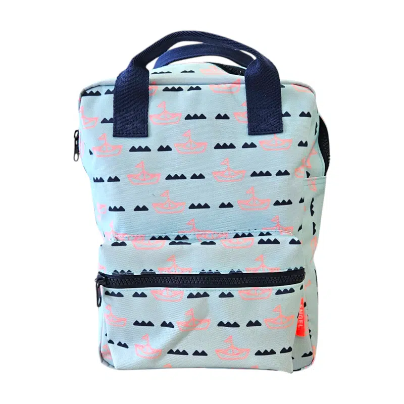 De Paper Boats rugzak medium is milieuvriendelijk en is gemaakt van gerecyclede PET flessen. De waterafstotende voering in combinatie met het stevige en ruime ontwerp maakt de rugzak heel geschikt om iedere dag mee naar school te nemen. De rugzak heeft een afmeting van 31 x 23 x 10 cm en is ruim genoeg voor een broodtrommel en twee drinkbekers. Het elastiek aan de binnenzijde houdt de beker goed op zijn plek en de broodtrommel kan netjes in een afsluitbaar vak met klittenband geplaatst worden.