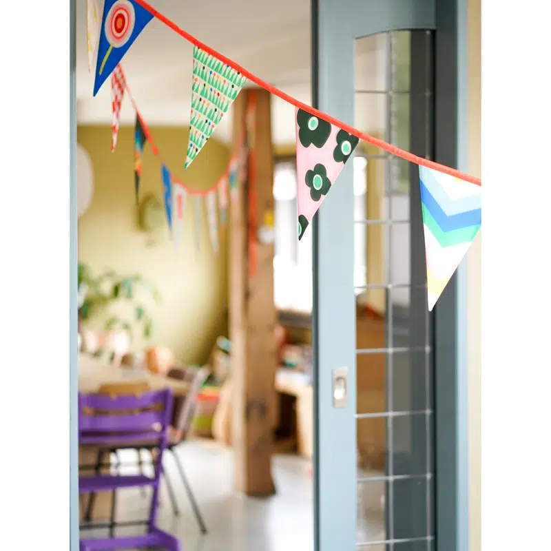 De Slinger Sun 2.0 maakt ieder feestje nog feestelijker! De stoffen vlaggenlijn is maar liefst 12 meter lang. De woonkamer is nog nooit zo snel en mooi versierd. En vier je het feestje buiten? Ook dan kun je deze slinger ophangen want hij is geschikt voor binnen- en buiten! De vlaggenlijn is gemaakt van gerecyclede PET flessen en wordt geleverd in een mooie opbergetui. Zo heb je jarenlang plezier van deze mooie slinger met 24 vlaggen. Let’s celebrate life met deze vrolijke Slinger Sun 2.0!