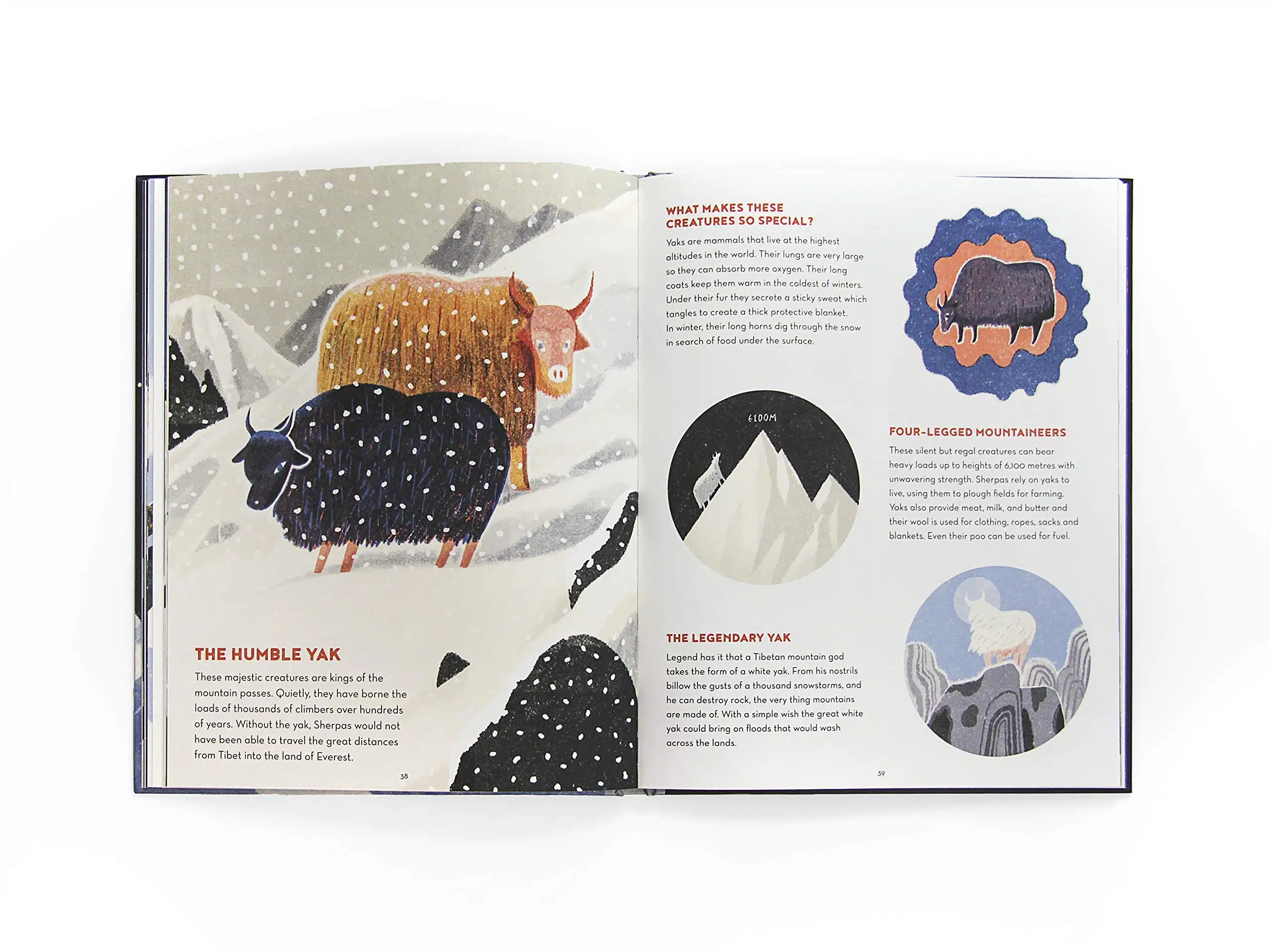 Hoe meet je een berg? En hoe word je bergbeklimmer? Waarom hebben Sherpa’s minder last van de ijzige kou? Hoe hebben de sneeuwlotus, de sneeuwpanter en de jak zich aangepast aan de extreme omstandigheden? Bestaat de Verschrikkelijke Sneeuwman echt?