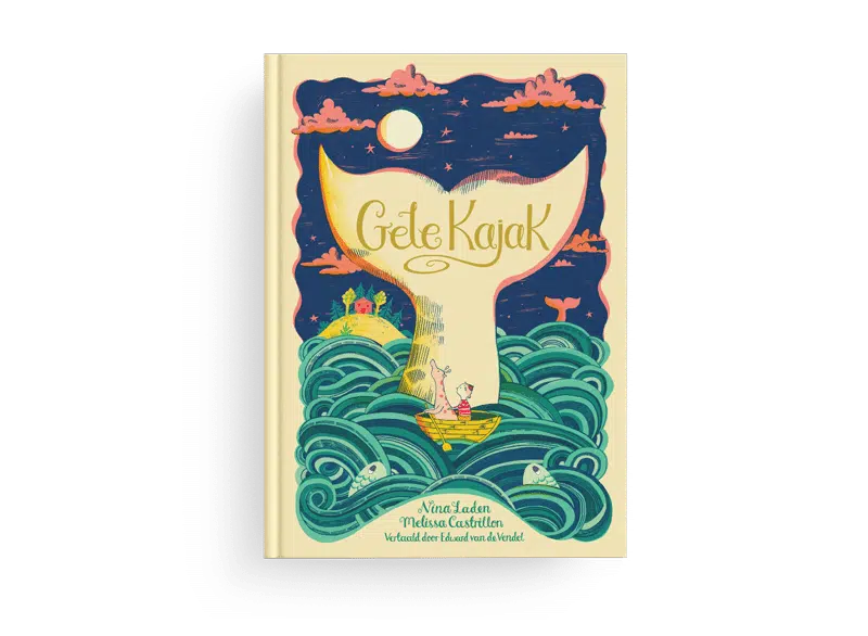Gele kajak is een lyrisch zeeverhaal met korte zinnetjes op rijm, vertaald door Edward van de Vendel. De oogstrelende illustraties van Melissa Castrillón, waarvan al eerder Machtige Min verscheen, nemen de lezer mee naar magische werelden op en onder zee.
