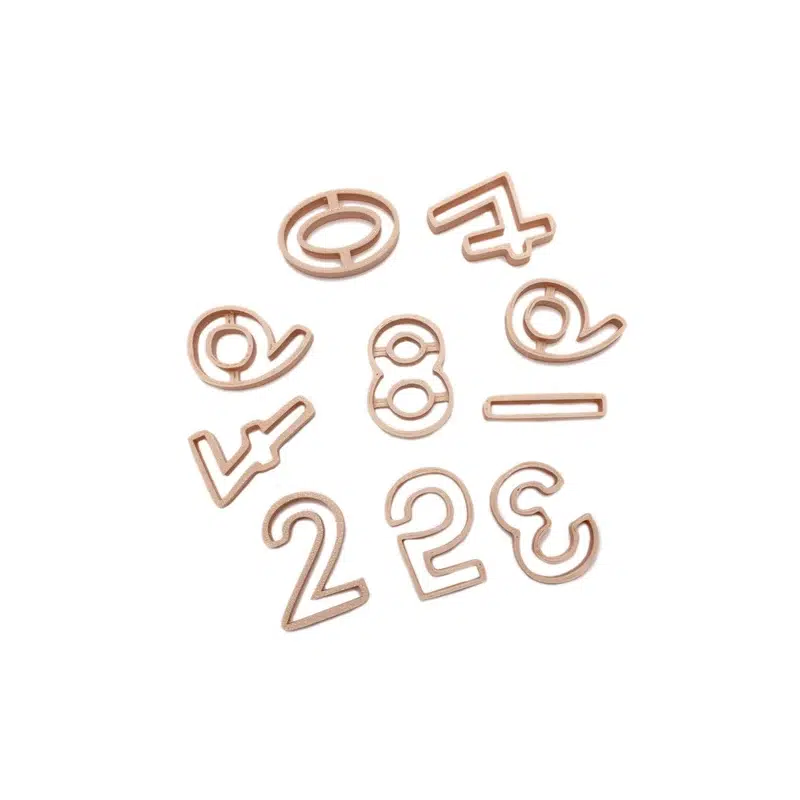 Deze milieuvriendelijke cijfer uitstekers zijn ontworpen en gemaakt door Grennn. Elke cijfer is gemaakt van gerecycled houtzaagsel en biologisch afbreekbaar plastic van plantaardige oorsprong.