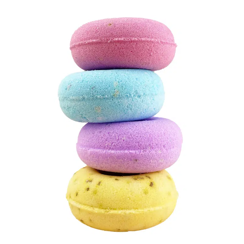 4 bruisende donuts heerlijk geparfumeerd met suikerspin en vanille voor een moment van ontspanning en rust. Ideaal in een mooie geschenkdoos, super schattig in je badkamer of om cadeau te geven!