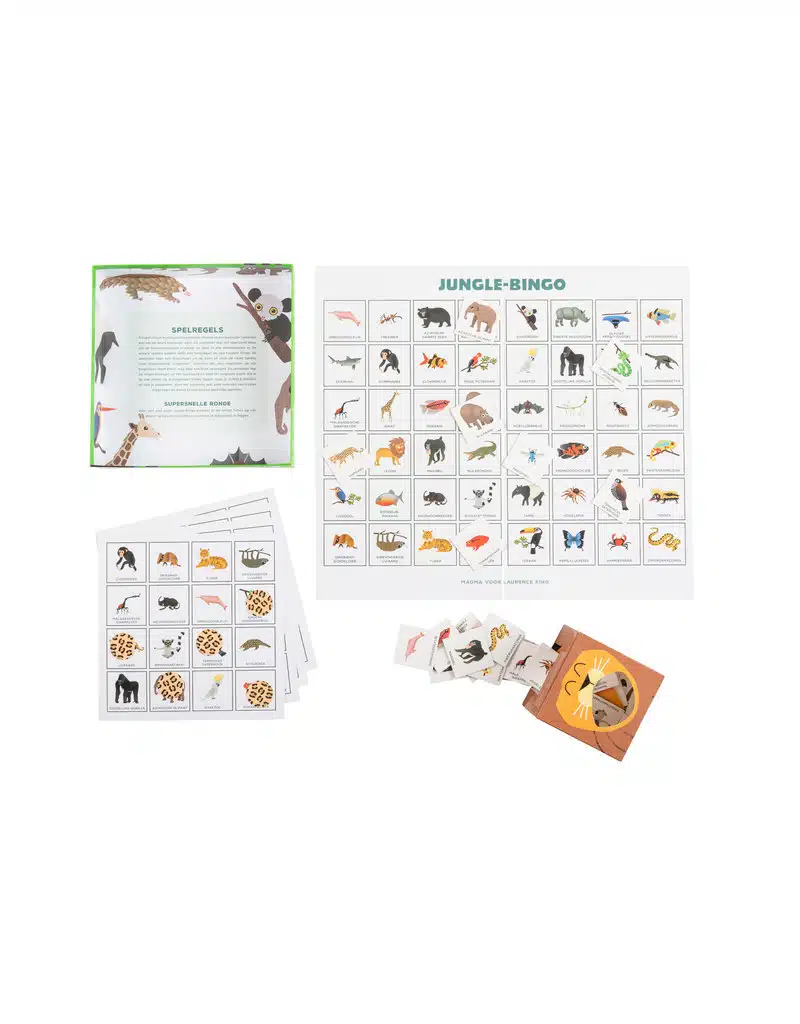 Jungle Bingo is een eenvoudig spel vol spannende wilde dieren waarmee kinderen zich urenlang vermaken. Perfect voor kleine en grote dierenliefhebbers!