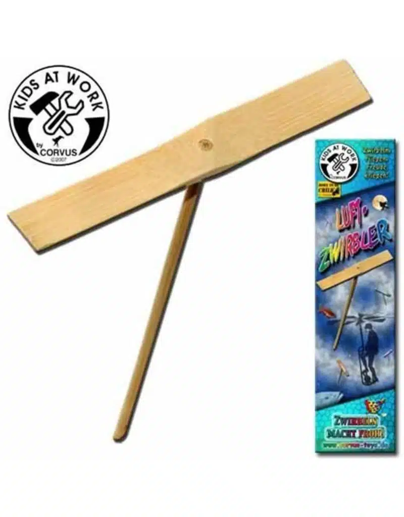 Draai de steel in je handen en zie hoe de helikopter de lucht in vliegt. Maak dit leuke helikopertje nog mooier door het zelf te versieren met verf of stift!