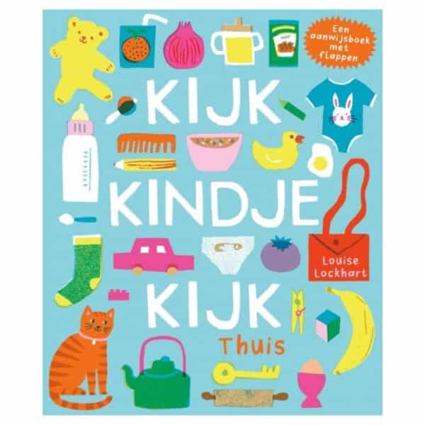 Dit stevige prentenboek is het ideale hulpmiddel bij het opbouwen van de woordenschat van dreumesen. Een aanwijsboek is een leuke manier om woordjes met je kindje te oefenen. In ‘Kijk, kindje, kijk – Thuis’ kunnen kinderen allerlei voorwerpen uit hun dagelijks leven ontdekken, benoemen en herkennen. Een fluitketel bijvoorbeeld, een houten huis voor de poppen of sop om lekker grote bubbels in het bad te maken.
