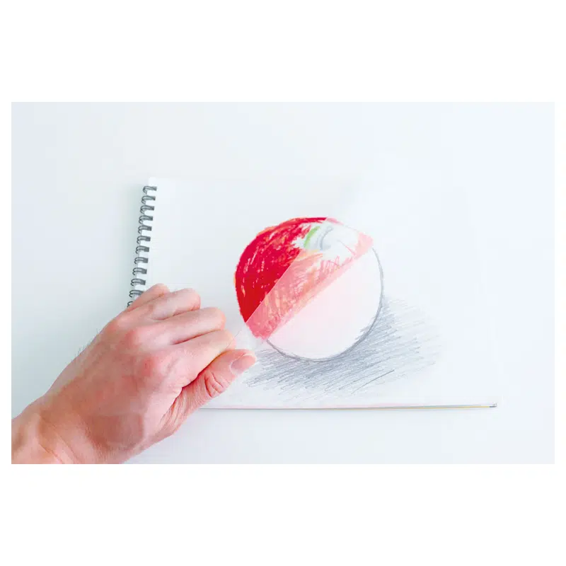 Een schetsboek met heel mooi tekenpapier. Voor de mooiste Kitpas creaties. Voorin zit een doorzichtig blad. Kras een beetje kleur op dit blad, doop de waterbrush pen in water en je kan aquarellen. Of gebruik het blad om vormen nat tetekenen.
