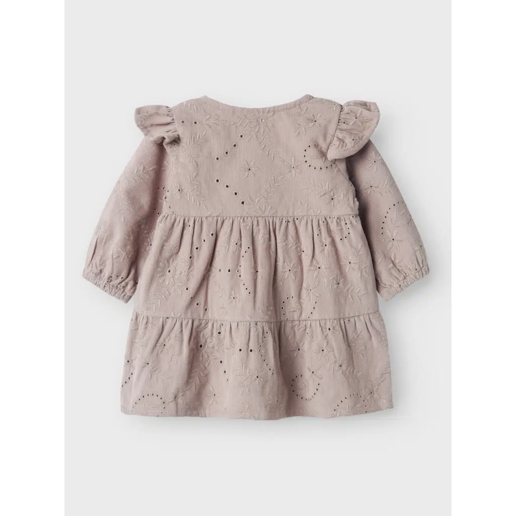 Refresh your child´s wardrobe with beautiful and cool dresses perfect for any season and occasion. Corduroy is a lustrous fabric with a velvety rib surface for a soft feel. – Product Type : Dress – Neck : O-Neck – Sleeve : Long Sleeves (L/S) – Cuffs : Elasticated cuffs – Closing : Button and loop fastening – Extra details : Embroidery, Frills – Fit : Loose Fit