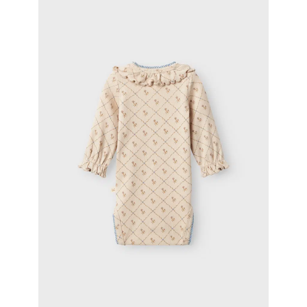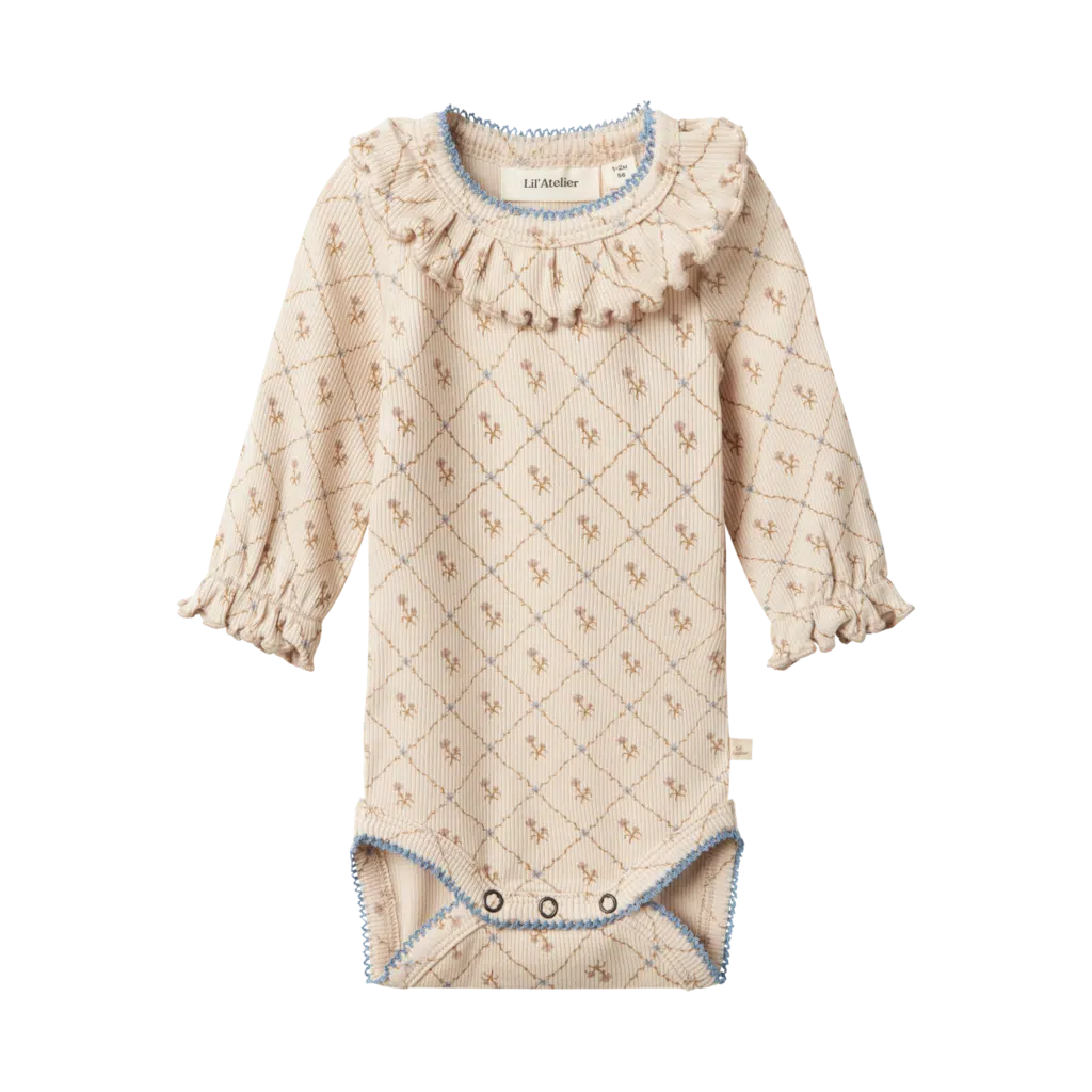 Put together the perfect outfit for your child with quality everyday styles and create a comfortable and trendy look. Jersey is a lightweight and stretchy fabric with a soft surface and inside for a comfortable feel and freedom to move. – Product Type : Bodysuit – Neck : O-Neck – Sleeve : Long Sleeves (L/S) – Cuffs : Elasticated cuffs – Closing : Press stud fastening in shoulder, Press stud fastening – Extra details : Frills, Label, Babylock detail – Print : Print repeated across the entire surface of the product