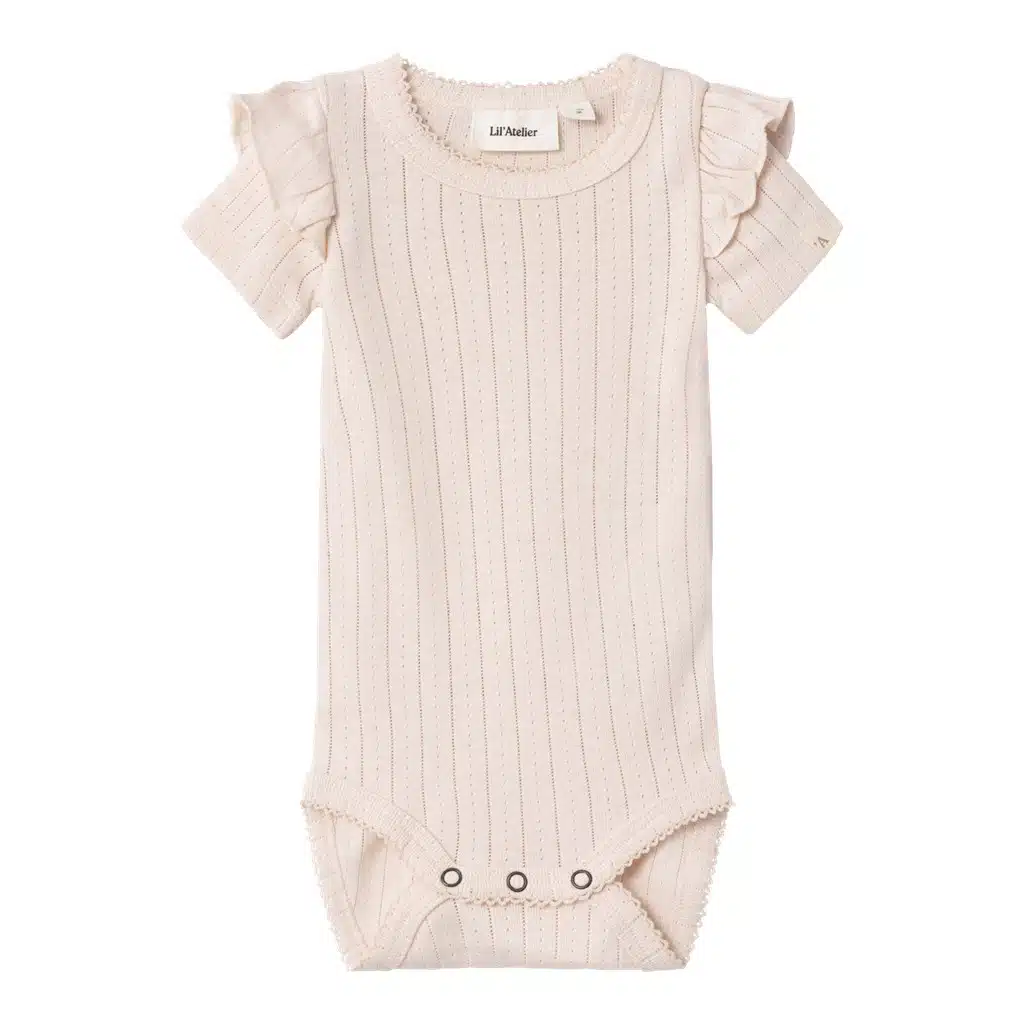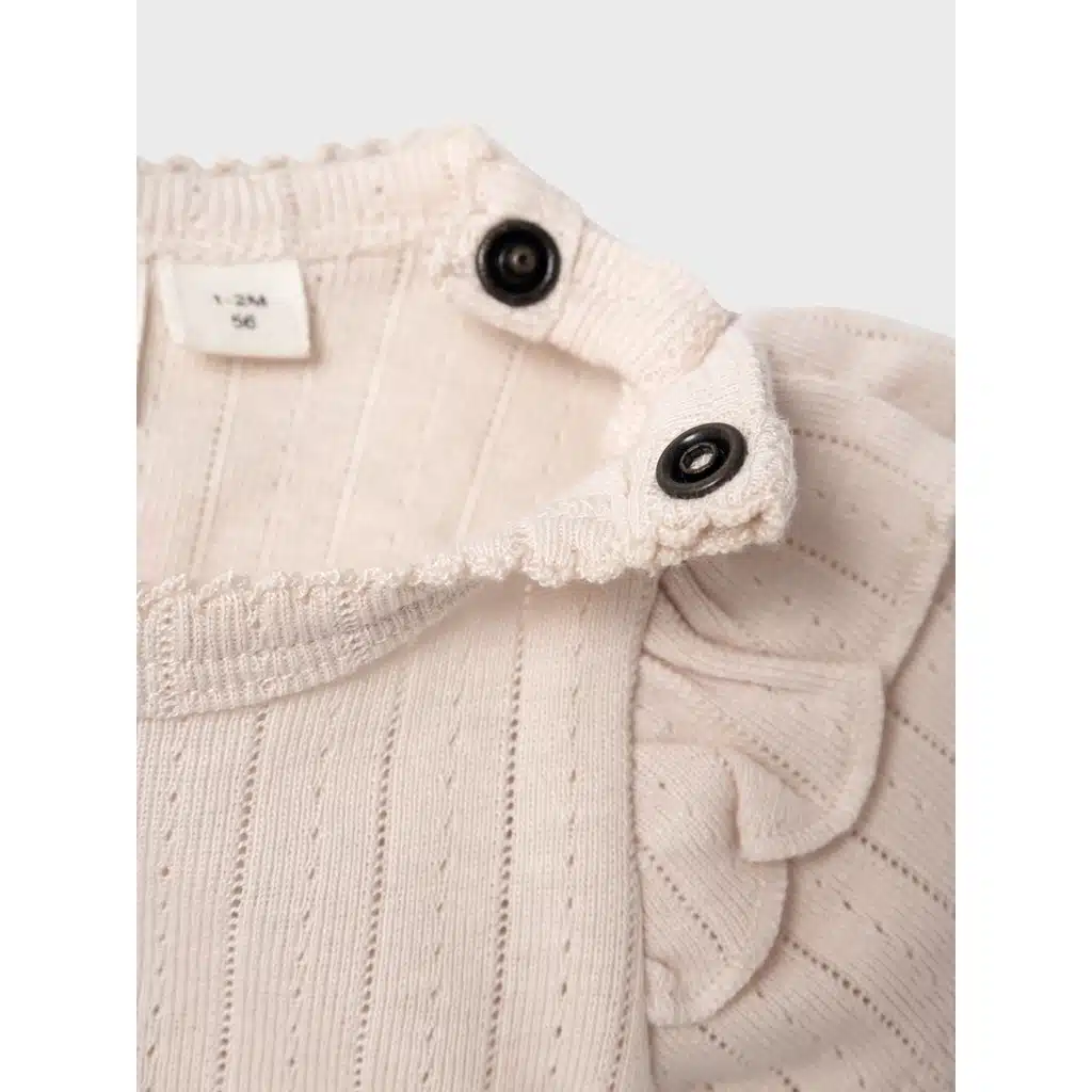 Put together the perct outfit for your child with quality everyday. Styles and create a comfortable and trendy look, Needle drop is characterised by dropped stitches for unique patterns and a cute look, – Product Type : Bodysuit – Neck : O-Neck – Sleeve : Short Sleeves (S-S) – Closing : Press stud fastening – Extra details : Frills