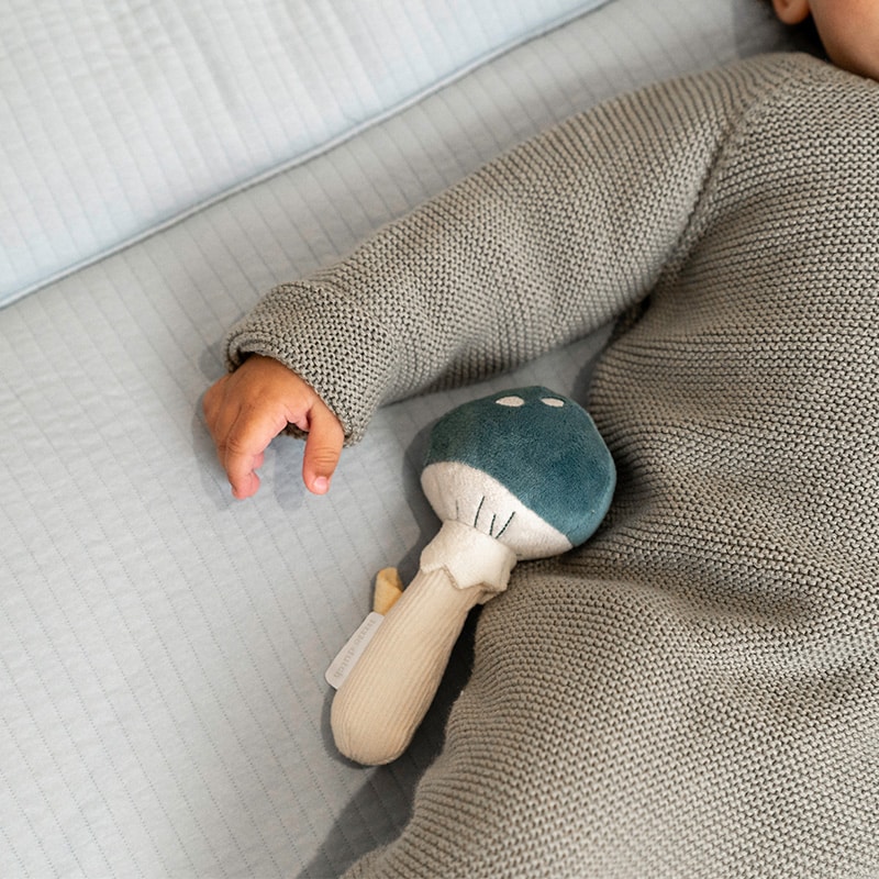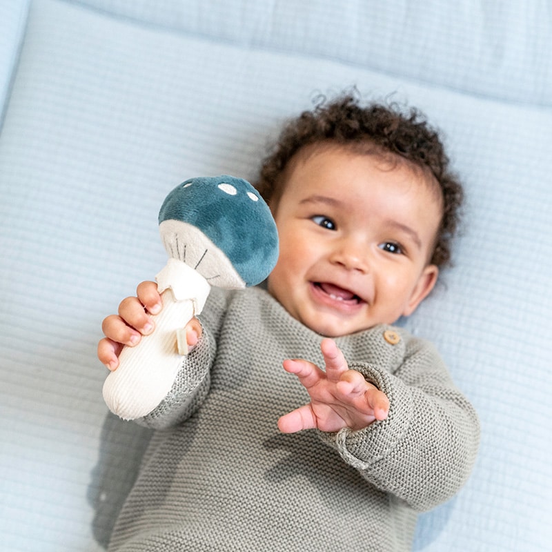 Rammel deze betoverende paddenstoel! Als je er mee speelt hoor je een plezierig geluidje. De rammelaar stimuleert de hand-oogcoördinatie, is van heerlijk zacht materiaal gemaakt en kan makkelijk door kleine kinderhandjes vastgepakt worden.