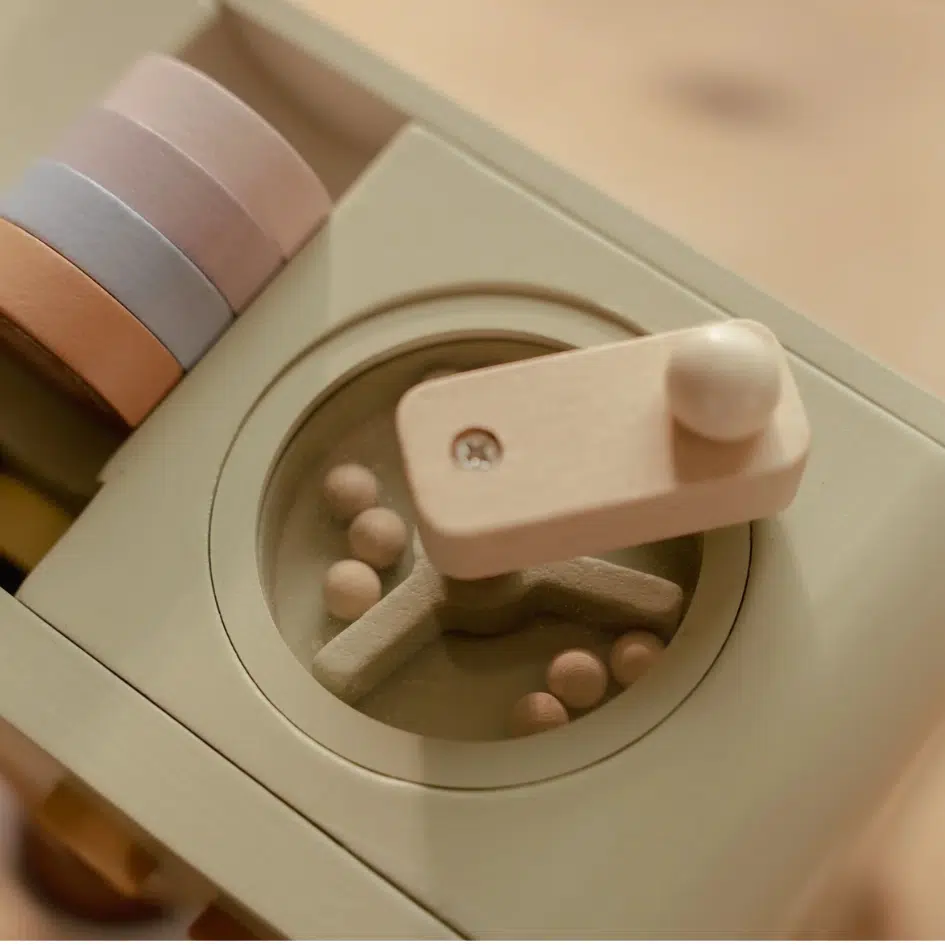 Tijd voor een lekker kopje koffie of thee! Met dit houten koffiezetapparaat kunnen kleine barista’s zelf bonen malen, koffiecapsules plaatsen en hun drankje roeren met een lepeltje. De set bevat twee kopjes, twee lepeltjes, een melkkan, melkpakjes en zelfs cappuccino-sjablonen voor een echte koffie-ervaring. Op de achterkant van het apparaat staan vrolijke illustraties. Perfect te combineren met de speelgoed koffiehoek voor nog meer speelplezier. Wat mag het zijn vandaag: koffie of thee?