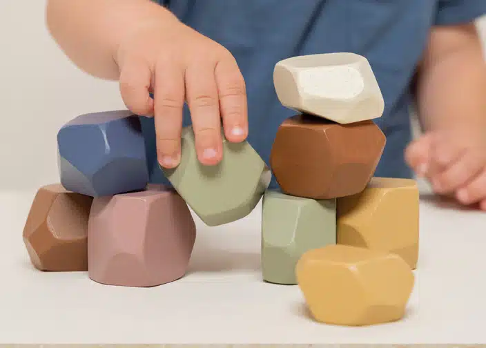 Deze speelse stenen in vintage kleuren spreken tot de verbeelding van je kleintje. Het is niet alleen leuk en uitdagend om met deze ongelijke stenen een toren te bouwen, het is ook nog eens spannend! Blijft de toren staan of valt hij om? Het spelen van dit stapel- en balanceerspel bevordert de hand-oogcoördinatie en probleemoplossende vaardigheden, terwijl je kindje zich urenlang vermaakt!