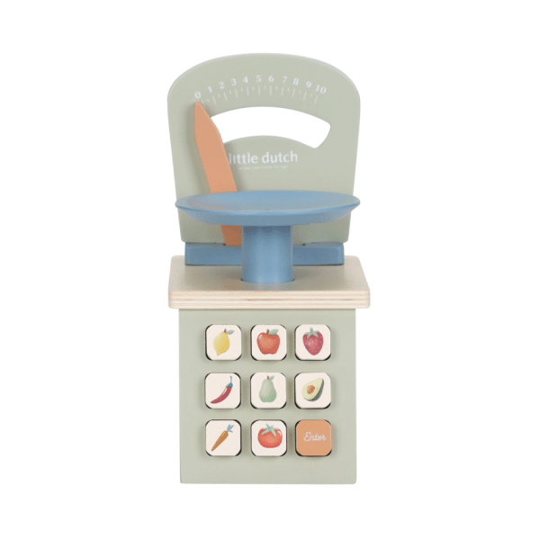 Een perfect ingrediënt voor elk keukentje! Met deze houten speelweegschaal kunnen kleine bakkers en chef-koks hun ingrediënten precies afwegen. Plaats de producten op de weegschaal en kijk hoe de wijzer het gewicht aangeeft. De weegschaal heeft echte knoppen met illustraties en maakt het spelen in de keuken nóg realistischer. Perfect te combineren met de speelkeuken en bakset voor eindeloos speelplezier!