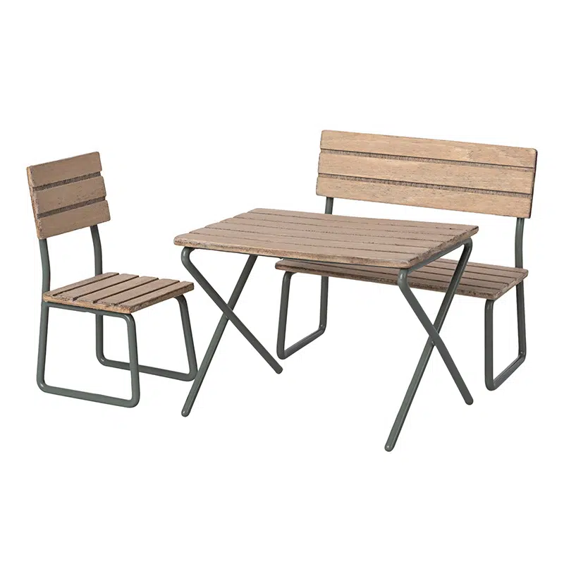 Vergeet de buitenkamer niet. Deze tuinset is perfect voor alle zomerse borrels. Het is gemaakt in een vintage look en de muizen passen erop.