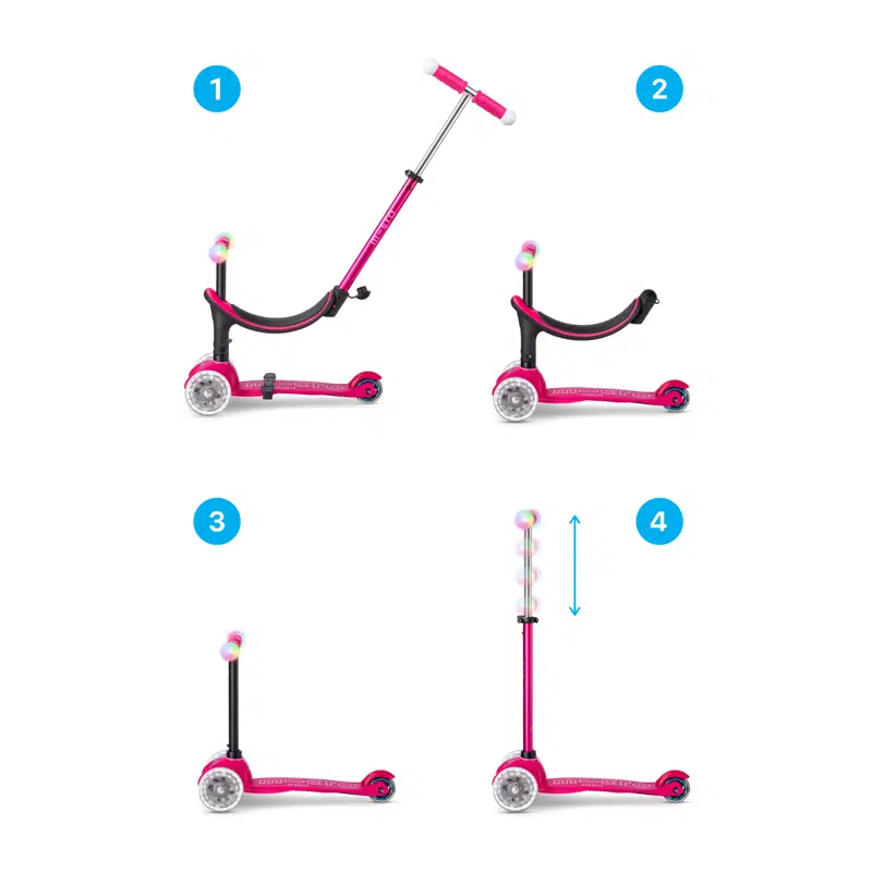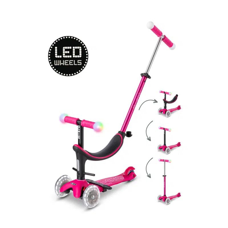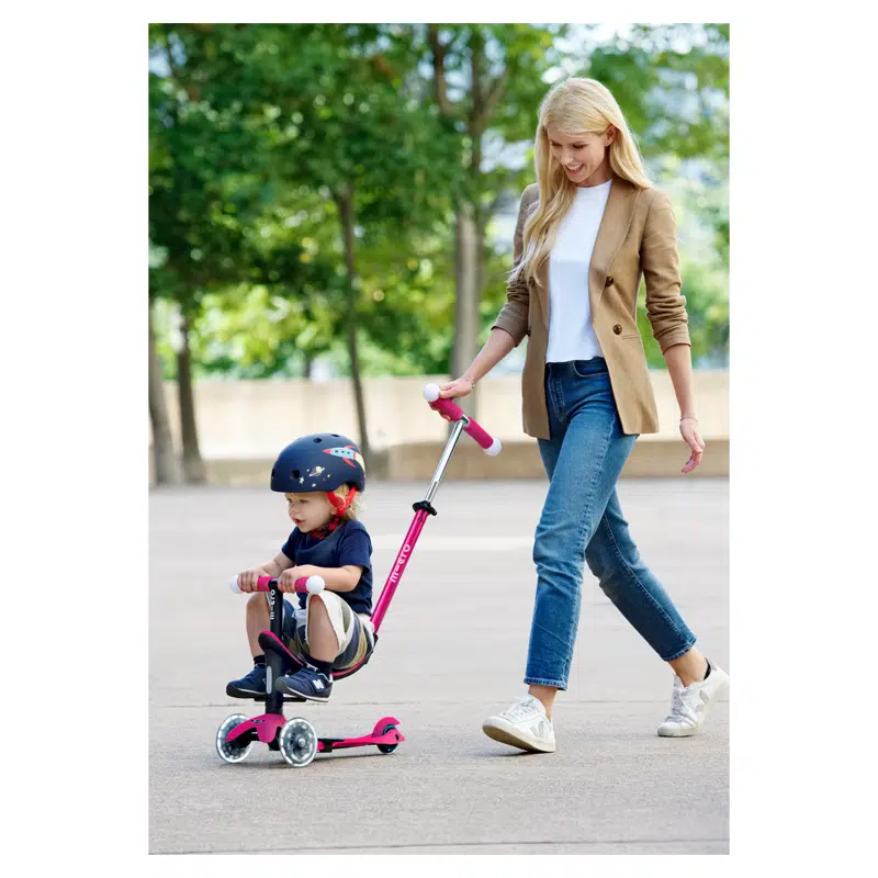 Met het lage stuurzitje voor de Mini Micro step kunnen kinderen vanaf 1 jaar al beginnen met steppen. Je kind stuurt door naar links of rechts te leunen, dit bevordert coördinatie en evenwichtsgevoel. Met de duwstang kun je je kind gemakkelijk voortbewegen als het moe is, of als het wat hulp nodig heeft. En door de LED wielen is het steppen extra leuk en is je kind bovendien goed te zien in het donker, extra veilig.