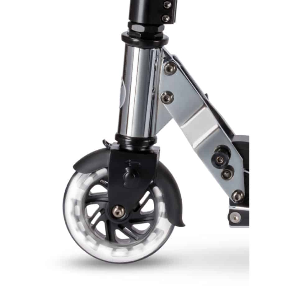 Gebruiksgemak: Eenvoudig inklapbaar, met een rem die tevens als spatbord fungeert en een stevige PAGF-standaard voor stabiele rechtopstaande positionering. Voorzien van streeploze LED-wielen van hoogwaardig PU voor een soepele en comfortabele rit.