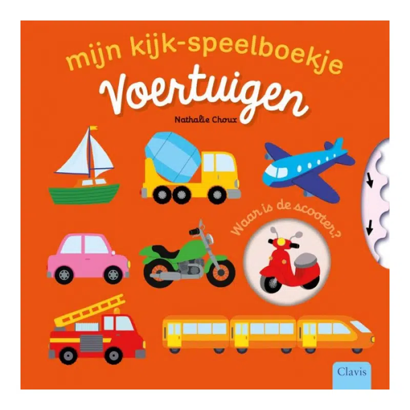 Een druk kijk-speelboekje over allerlei soorten voertuigen. Voertuigen leren kennen wordt nog leuker met een interactief boekje dat jonge kinderen uitnodigt om zelf voertuigen te zoeken.
