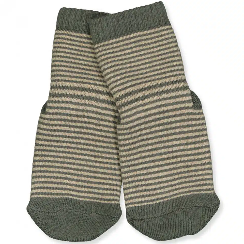 Our classic anti-slip sock with pretty small stripes. Helps get your child on the feet with the anti-slip details under the foot. Durable and soft yarns which ensures a good product even after much use.