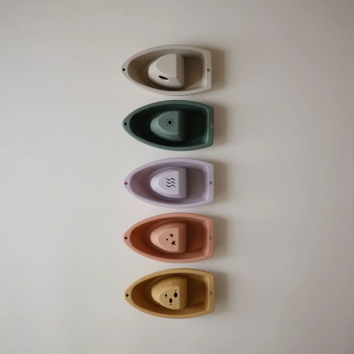 Dit avontuurlijke stapelspeelgoed wordt geleverd in een set van 5 bootjes.