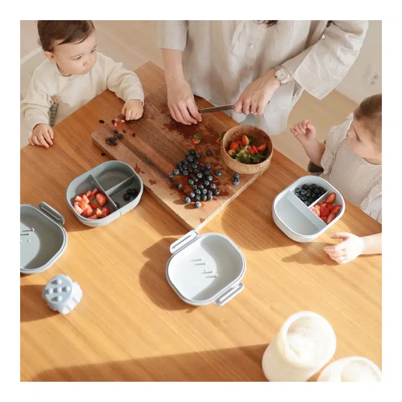 Mushie’s Lunch Box is de perfecte box voor maaltijden onderweg. Het tussenschot scheidt de verschillende soorten voedsel en bewaart het veilig tot etenstijd met de ingebouwde compartimenten en het goed sluitende deksel.