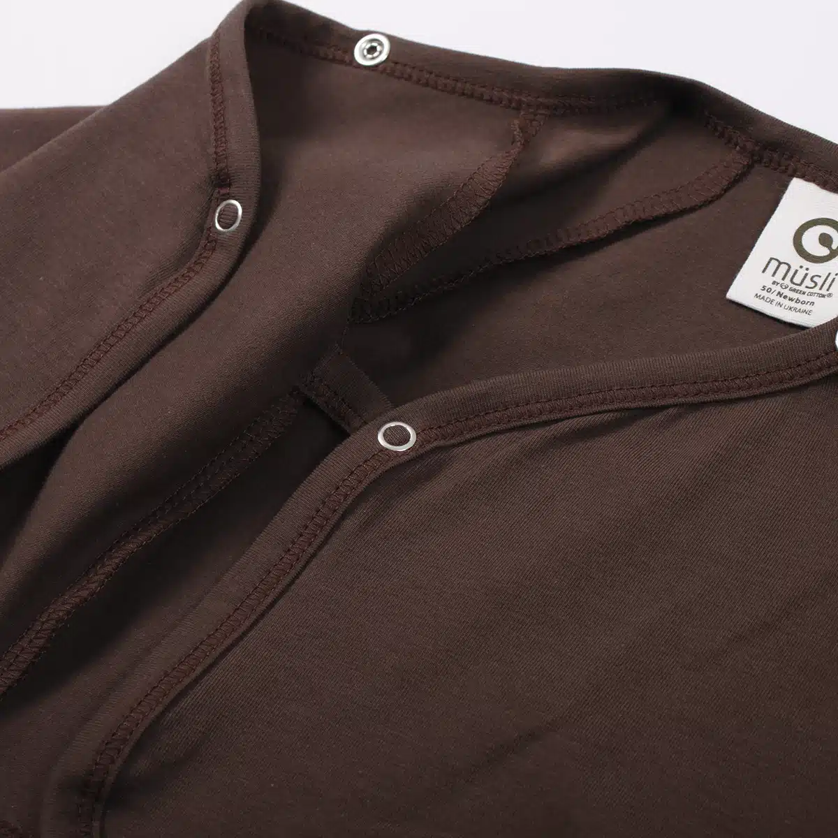 This cardigan is made in size 44-74 and can therefore be used for very small babies. Nice and soft baby cardigan with cross close at the front witch makes change more comfortable for the baby. The cardigan has snap-buttons and is made in a stretchy and soft quality. (GOTS Organic Certified by Ecocert Greenlife Lic. No. 152033). The product is GOTS Organic certified which means, that the cotton is certified organic. Also the strictest concern for the environment has been taken in all the other processes, like dying, knitting and sewing. GOTS also takes into consideration the work conditions for the workers. Organic cotton 95%, Elasthane 5%