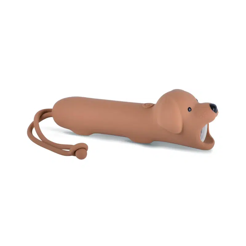 Honden-vormige zaklamp, bedekt met zacht siliconen, is de perfecte combinatie van functionaliteit en plezier. Dankzij de handige helderheidsregeling is hij ideaal voor avondavonturen, schaduwspel of verhaaltjes voor het slapengaan. Oplaadbaar via een USB-C-kabel, biedt hij comfort en lange gebruiksuren. De hanger maakt het eenvoudig om de zaklamp op te hangen waar hij nodig is.