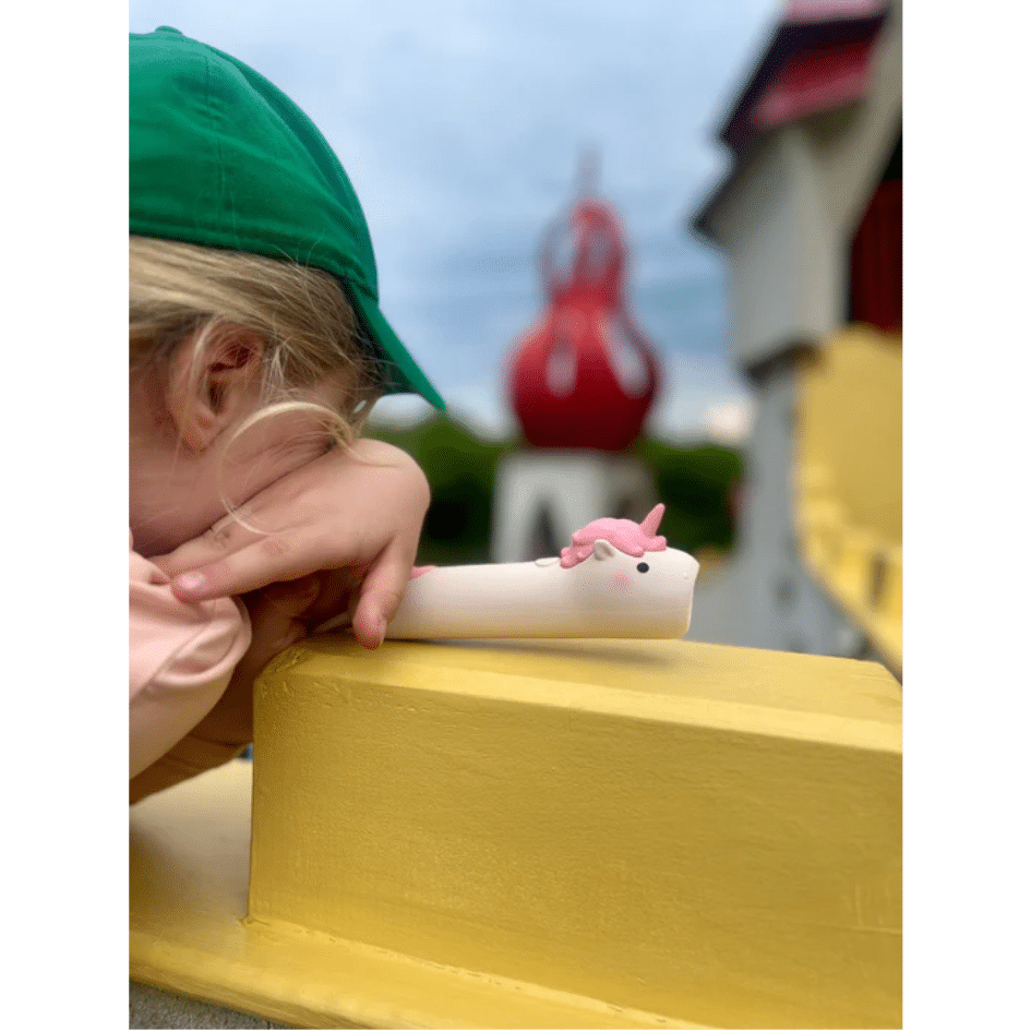 Unicorn-vormige zaklamp, bedekt met zacht siliconen, is de perfecte combinatie van functionaliteit en plezier. Dankzij de handige helderheidsregeling is hij ideaal voor avondavonturen, schaduwspel of verhaaltjes voor het slapengaan. Oplaadbaar via een USB-C-kabel, biedt hij comfort en lange gebruiksuren. De hanger maakt het eenvoudig om de zaklamp op te hangen waar hij nodig is.