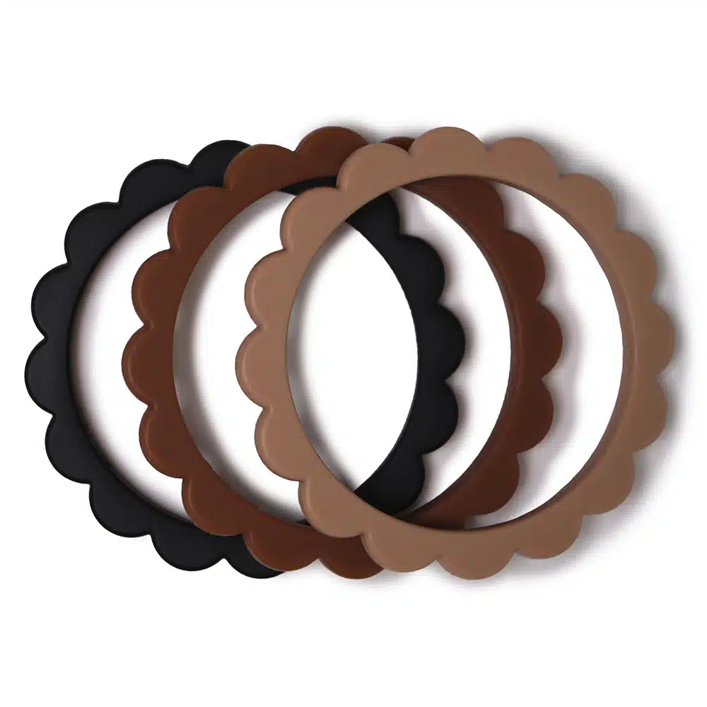 Siliconen Bijtring/armband Flower – Black/Nat/Caramel