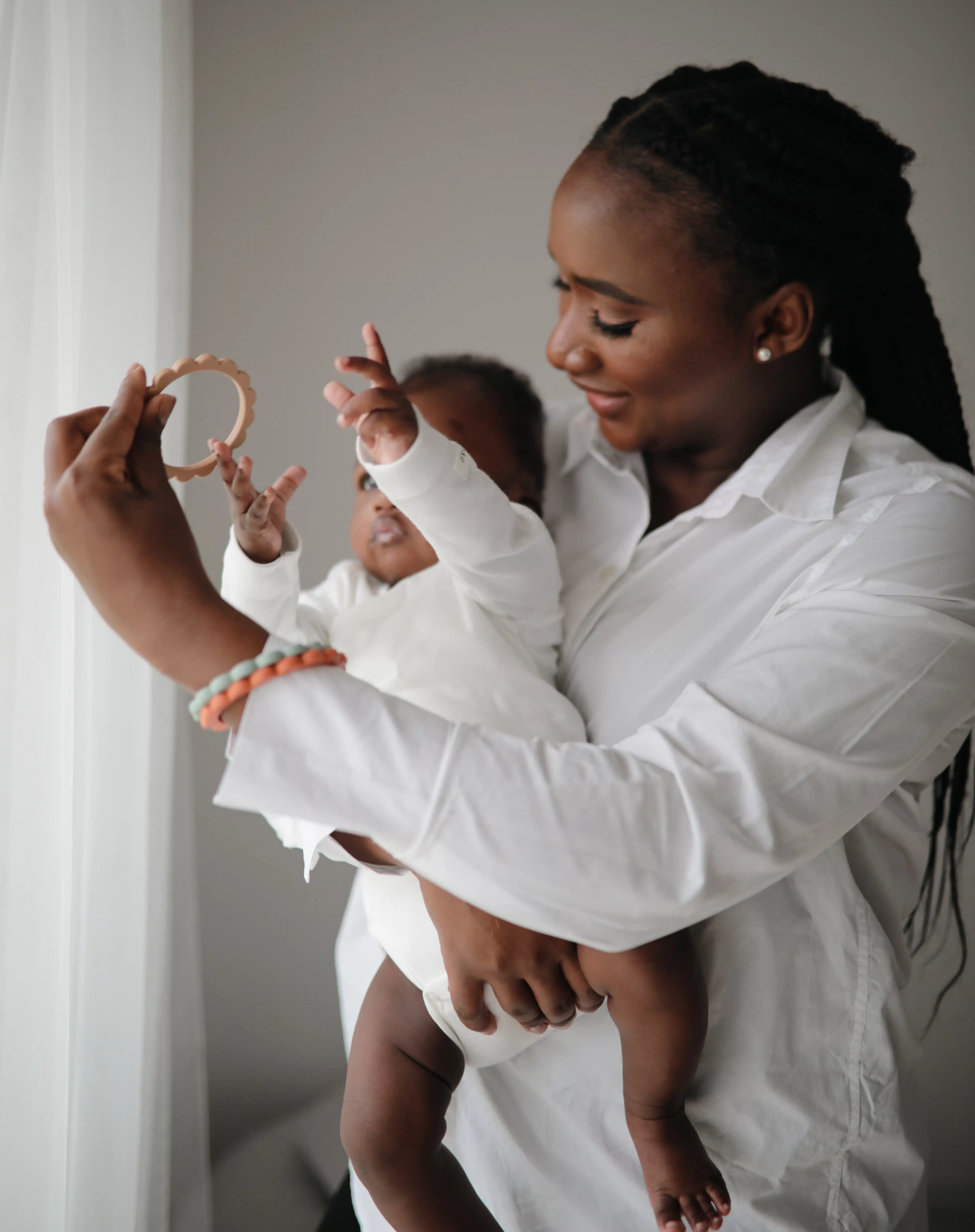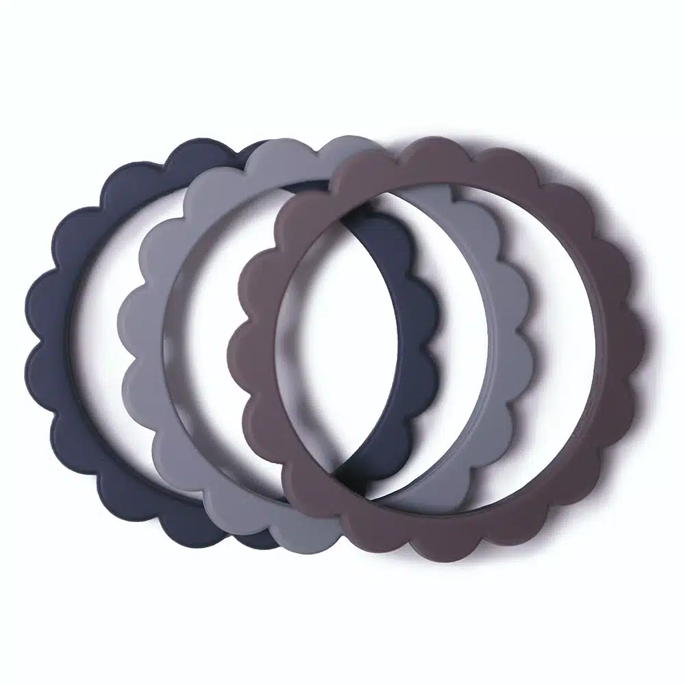 Siliconen Bijtring/armband Flower – Steel/Grey/Stone