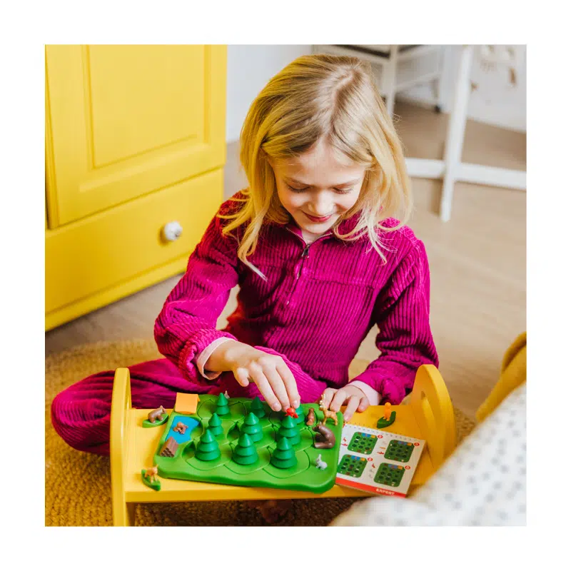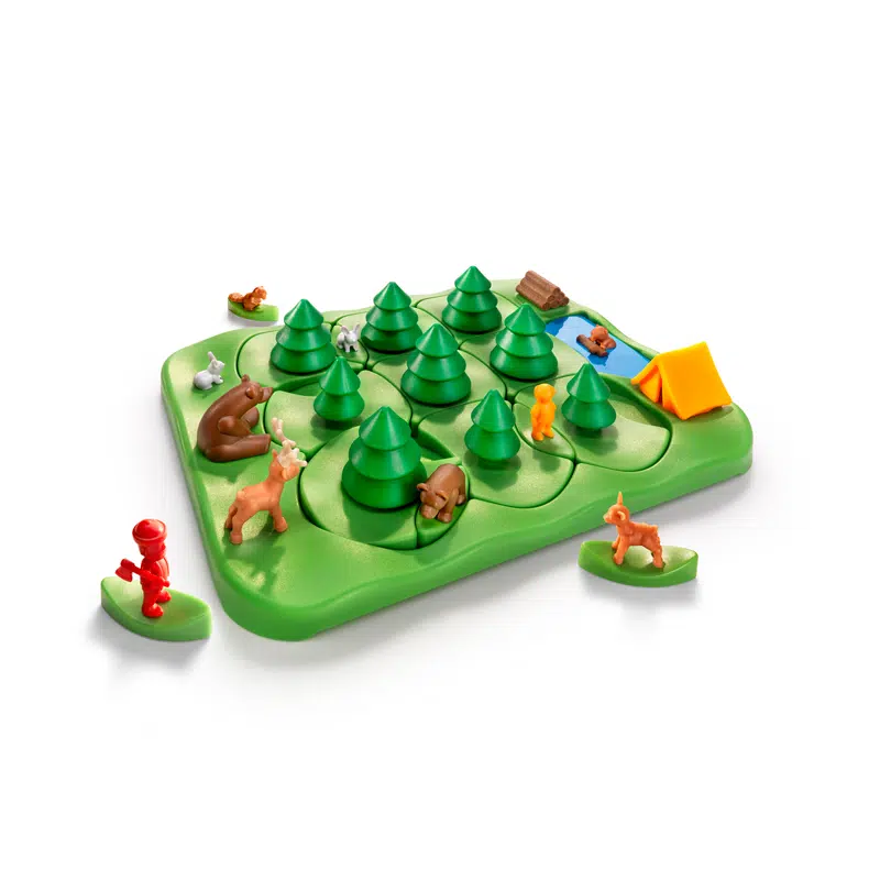 Roteer de puzzelstukken met bomen en leid iedereen doorheen het woud… maar pas op voor de beer! Een verdraaid origineel puzzelspel met 80 opdrachten. Kan jij door de bomen het bos zien?