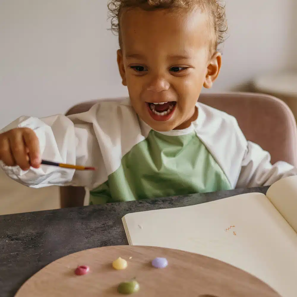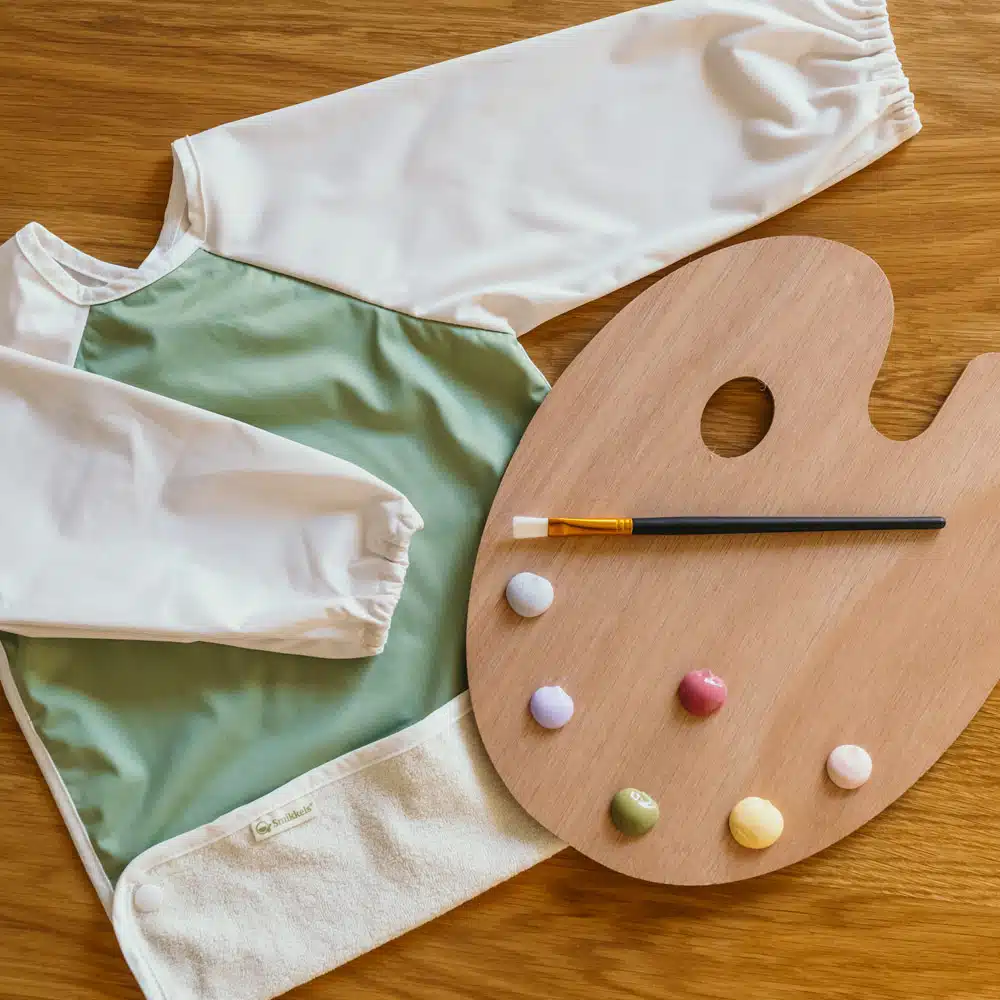 De veelzijdige slab met mouwen van Smikkels is de ultieme bescherming voor jouw kleintje. Deze handige mouwslab is vervaardigd van hoogwaardig RPET-materiaal, afkomstig van gerecyclede PET-flessen. Een duurzaam, zacht, sterk en waterafstotend materiaal. Met de drukknoopsluiting en een tweelaagse constructie van superzacht RPET en 100% biologisch katoenen badstof, is deze slab comfortabel en gemakkelijk om te doen. Verkrijgbaar in twee maten en meerdere kleuren. Met de drukknopen kun je onderaan de slab een opvangbakje creëren. Ideaal voor zelfstandige eters om vocht en kruimels op te vangen. Wanneer de drukknopen worden losgemaakt, heb je een extra lange slabber. Perfect voor knutselen, schilderen en koekjes bakken. De elastische mouwen voorkomen dat etensresten onder de mouwen belanden, waardoor jouw kleintje extra beschermd blijft tijdens het eten. Kies uit de vijf basis kleuren van Smikkels: geel, roze, groen, blauw of lila. De mouwslabbetjes blijven het mooist wanneer je ze wast op 30 graden en laat drogen op een droogrekje. Het slabbetje met mouwen is een onmisbaar item dat kleding schoon en droog houdt. Laat je kindje genieten en ontdekken zonder zorgen over knoeien. Praktisch en klaar voor elk avontuur – net als jouw kindje!