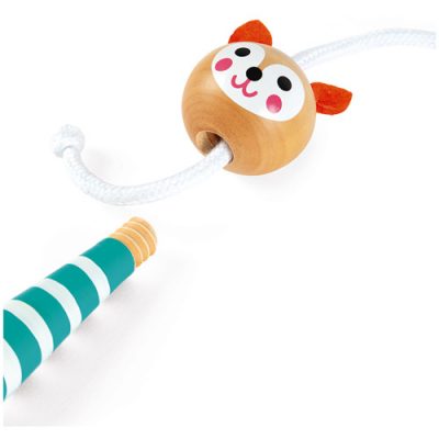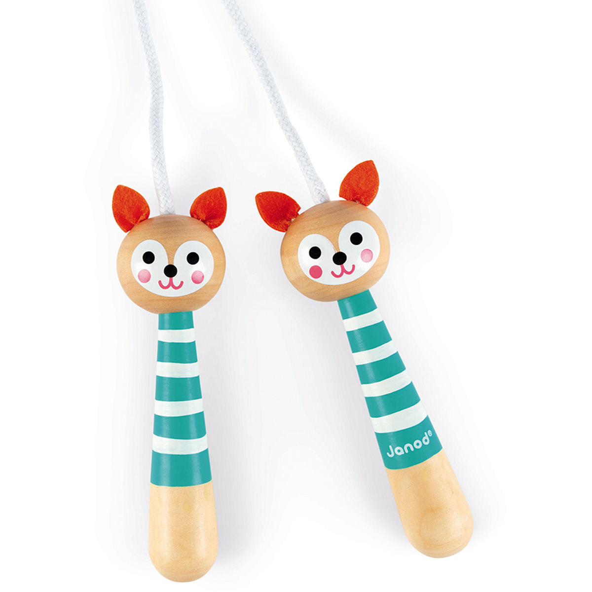 Mooi touw om te springen gemaakt van massief hout en vilt voor de oren. Touw: 2 meter verstelbaar. Geschikt voor kinderen van 3-8 jaar.