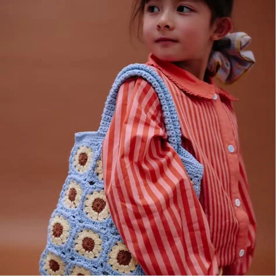 Deze schattige gehaakte tas is perfect voor avonturen. Naar het park, school of zelfs een klein avontuur in de achtertuin. Er past van alles in wat kinderen nodig hebben, van zonnebrandcrème en snacks tot een favoriet boek of speeltje.