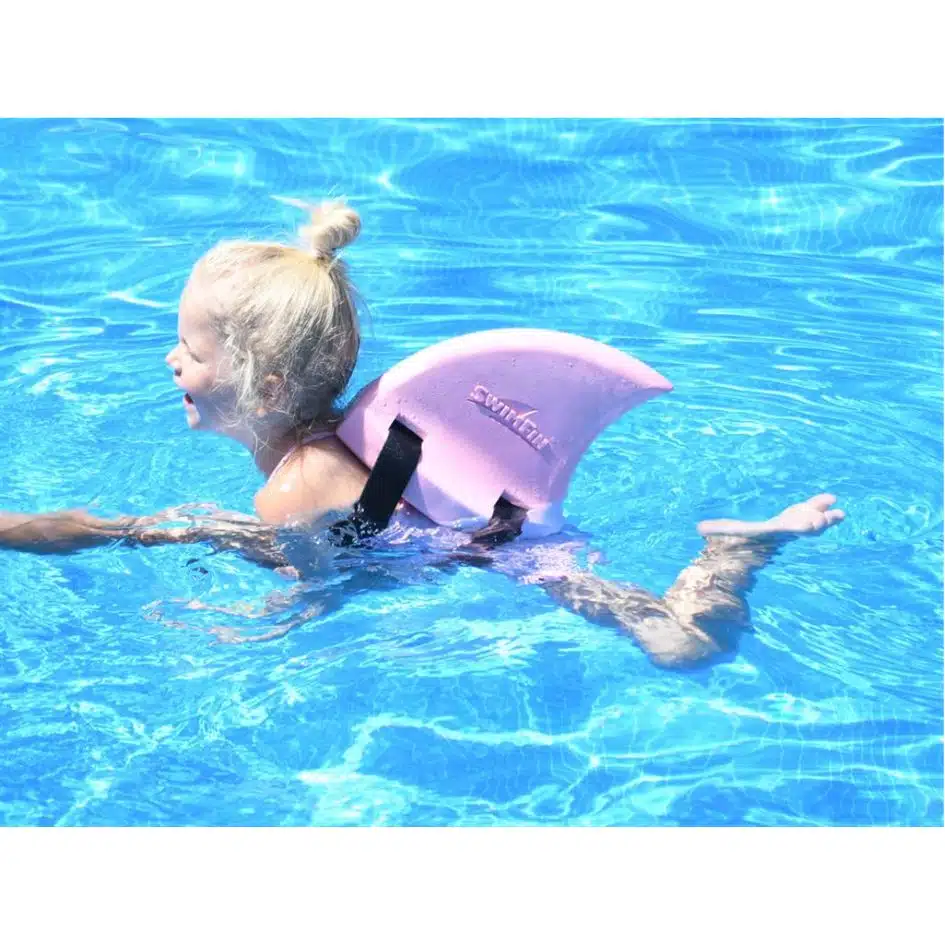 SwimFin is een hippe zwemhulp in de vorm van een haaienvin die je op je rug draagt en maakt zwemmen extra leuk!