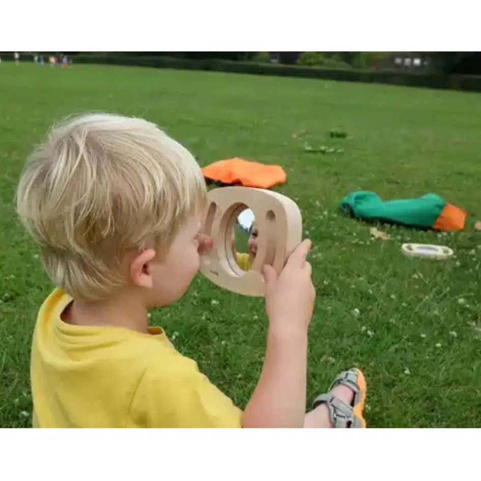 Onze tickit® Easy Hold Convexe/Concave Spiegel is een gemakkelijk vast te houden frame van massief rubberhout met handgrepen, dat een tweezijdig convex/concave spiegelcentrum omsluit dat uw kind zal helpen om op een unieke manier met de wereld om hem heen om te gaan. De spiegels produceren fascinerende reflecties en een vervormde werkelijkheid (ondersteboven, groter, kleiner, uitvergroot) om de nieuwsgierigheid van uw kind te prikkelen.
