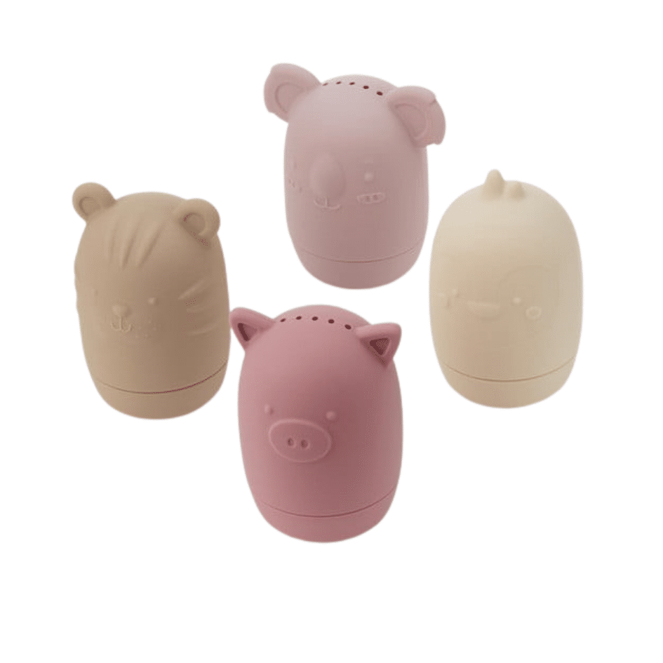 Onze dierenspuiten zijn leuk in het water of tijdens het baden, maar kunnen ook worden gedraaid om open te springen en gevuld met gedroogde peulvruchten of kralen om natuurlijke sensorische shakers te creëren. De set bevat een pinguïn, tijger, koala en varken – de tops en bottoms kunnen worden gemixt of gematcht. Door de gaatjes kan de geparfumeerde inhoud worden opgesnoven. Probeer te vullen met natuurlijke ingrediënten zoals citroenschil, knoflook, lavendelblaadjes, zeepvlokken of kaneelstokjes om een olfactorische zintuiglijke ervaring voor oudere kinderen te creëren. Deze set is verkrijgbaar in twee kleurstellingen – Neutral en Earth.