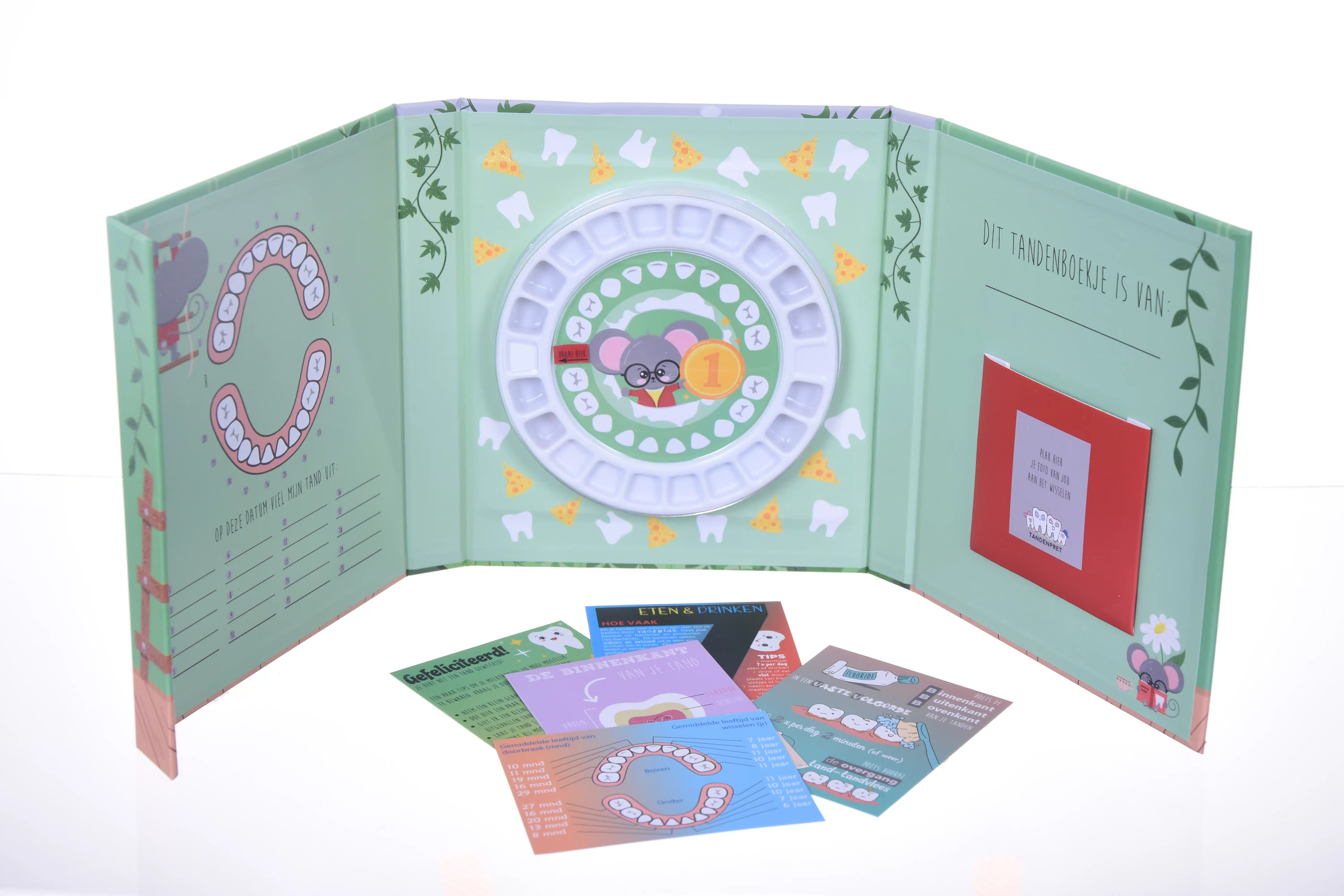 Nijl & Beer, nu de eerste tand eruit, maar er volgen er nog meer. Het boekje bestaat uit een handige houder met draaivakjes waar elke tand zijn eigen plaats heeft. Er is plaats voor een foto en bij elke tand kun je bijhouden wanneer deze gewisseld is. Daarnaast bevat het boekje een vijftal speciale kaartjes die het extra interessant maken voor uw kind. Deze kaartjes beschrijven educatieve weetjes over de tanden vergezeld van leuke tekeningen of bieden ruimte voor eigen (aan)tekeningen van uw kind. De kaartjes hebben een speciaal plekje in het album en nodigen uit om te exploreren en leren. Een luxe kwaliteit boekje met extra glansafwerking aan de buitenzijde en een magnetische sluiting om het boekje te sluiten. Prachtig om cadeau te mogen geven voor een pasgeboren baby of een wisselend kind. Bewaar de melktanden in dit mooie boekje en raak ze nooit meer kwijt!