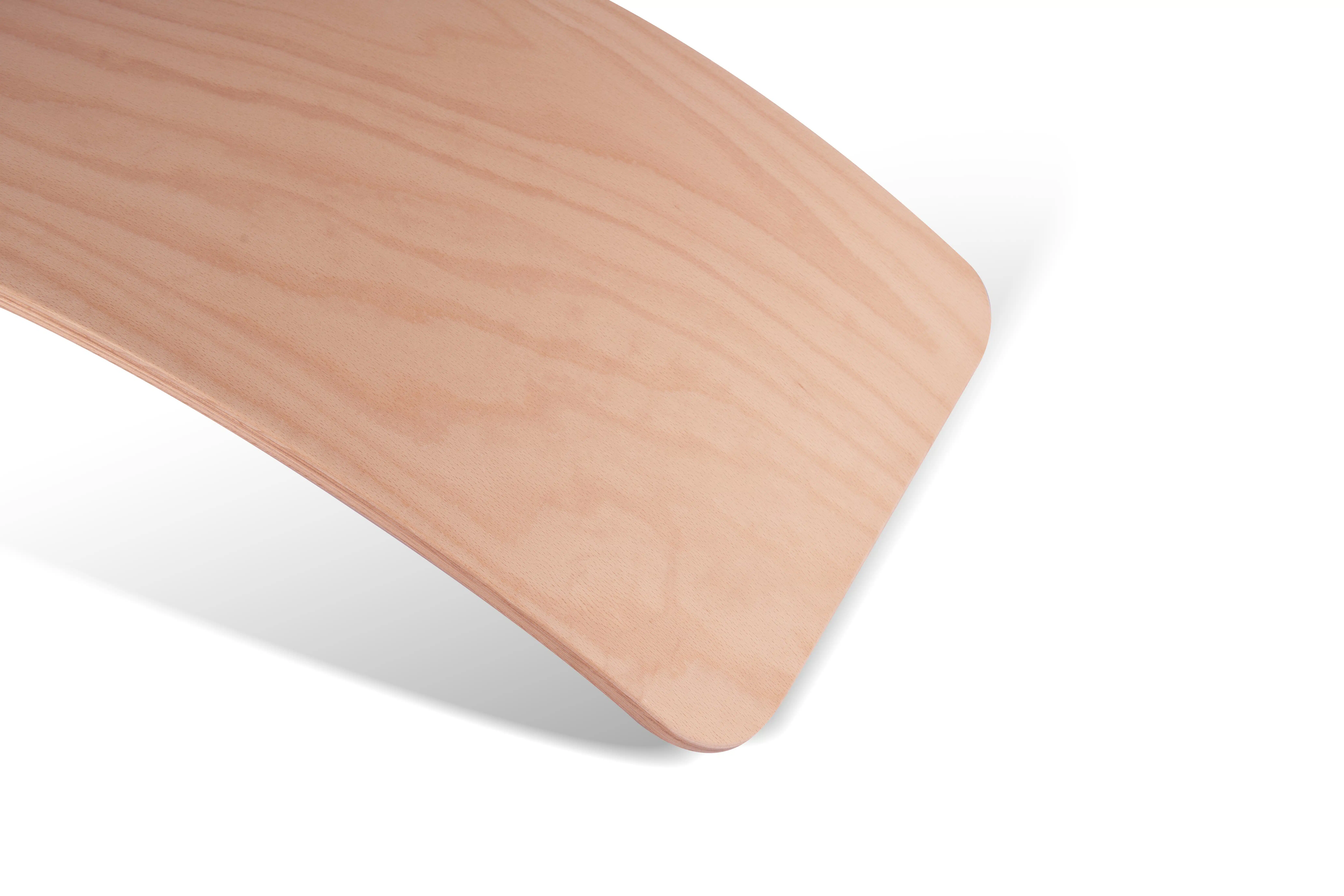 De Wobbel is vervaardigd uit zorgvuldig gestapelde en geperste lagen beukenhout en kent een unieke kromming.