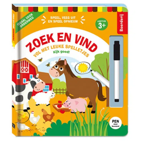Je hoeft je geen moment te vervelen met dit superleuke zoekboek! Zoek verborgen figuren en twee dezelfde plaatjes, volg de kronkelpaadjes, los puzzels op en nog veel meer! Op de laatste pagina staan de antwoorden. Wil je het nog een keer proberen? Veeg dan al je antwoorden uit en begin gewoon opnieuw.